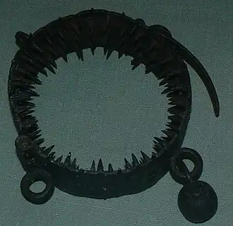 De halsband was een martelwerktuig waarin van hekserij beschuldigde verdachten werden gekneld als ze hun omgang met de duivel ontkenden. Deze houten, ijzeren of lederen halsband was aan de binnenzijde voorzien van puntige nagels. Aan de buitenzijde zaten koorden die aan de vier muren van de folterkamer werden bevestigd. Op die wijze bleef de halsband onbeweeglijk op dezelfde plaats. De beklaagde zat op een stoeltje en moest het hoofd steeds kaarsrecht houden, want bij de minste beweging drongen de pinnen aan de binnenkant van de halsband in de hals en veroorzaakten er ernstige verwondingen.