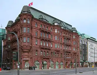 Nadat deze gesloopt werden ontstond op deze locatie het hotel "Hamburger Hof". Het huidige van rode zandsteen werd in de periode 1881-1883 gebouwd naar plannen van de architecten Bernhard Hanssen en Emil Meerwein. De gevels bevatten kunstsculpturen van Engelbert Peiffer (1830–1896).