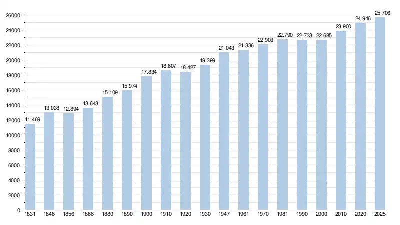 Alle historische gegevens hebben betrekking op de huidige gemeente, inclusief deelgemeenten, zoals ontstaan na de fusie van 1 januari 1977.