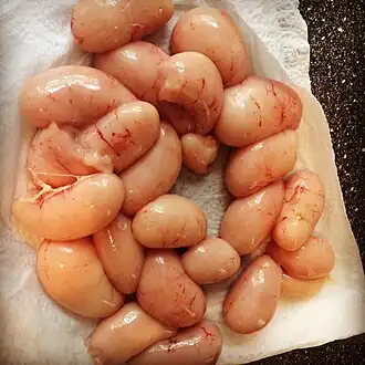 Ook andere organen van kippen en hanen worden gegeten, zoals hanenkammen, maagjes en hartjes. Het meest gegeten orgaan zijn kippenlevertjes.