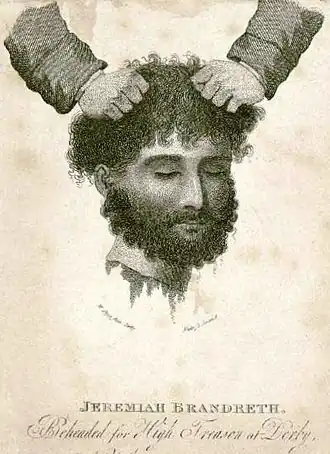 Jeremiah Brandreth die de opstand Pentrich rising van 100 man leidde, werd in 1817 een uur opgehangen te Derby Gaol. Daarna werd hij op aandrang van George IV van het Verenigd Koninkrijk onthoofd met een bijl. De plaatselijke mijnwerker die moest onthoofden, slaagde er niet in na twee houwen met de bijl en moest het hoofd van de romp scheiden met een mes. Toen hij het hoofd omhoog hield reageerde het volk met afschuw en vluchtte weg.
