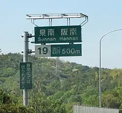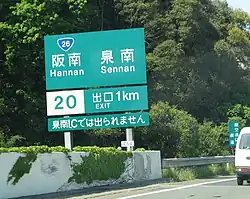| Knooppunt Izumisano | Kansai Kuko-autosnelweg | 37,8 | 90,1 | Izumisano | ||||