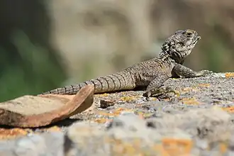 De habitat varieert van droge tot zeer droge gebieden. De ondergrond is altijd rotsachtig, vaak in berg- of kustgebieden. De hagedis klimt vaak op stenen en in bomen.[15] Ook in de buurt van steden kan de hagedis worden aangetroffen, zoals in huizen.[2]