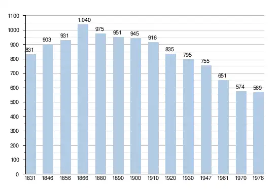 - Bronnen:NIS, Opm:1831 tot en met 1970=volkstellingen, 1976= inwoneraantal op 31 december
