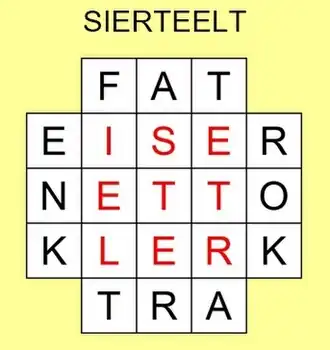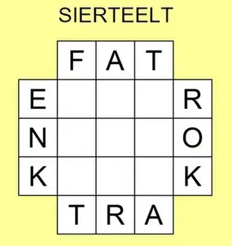 - De letters van het gegeven negenletterige woord (of zin) dienen zó in het centrale vierkant te worden gerangschikt, dat er samen met de gegeven letters drie horizontale en drie verticale woorden ontstaan.