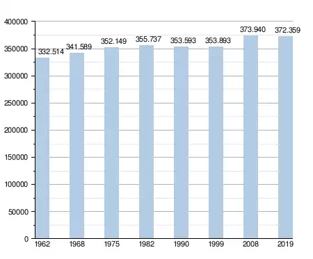 Bron: Recensement Populaire INSEE - 1962 tot 1999 population sans doubles comptes, nadien Population Municipale