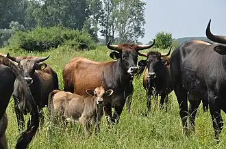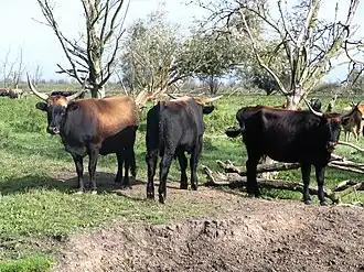- ↑ Het zogeheten taurusrund van de Duitse natuurbeheerder NABU https://rlp.nabu.de/projekte/lfa-weidelandschaft/Auerochsen/ (Duits), Projekt Taurus – En økologisk erstatning for uroksen.pdf (Deens). Gearchiveerd op 9 mei 2023.