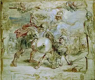 Maar toen hij Patroclus doodde, de beste vriend van Achilles, raakte Achilles gemotiveerd om weer deel te nemen aan de strijd. Hektor werd voor een duel uitgedaagd en door Achilles verslagen. Al stervende smeekte Hektor Achilles om zijn lichaam naar Priamus te brengen, zijn vader, maar Achilles weigerde dat en bond het lichaam achter zijn strijdwagen en sleepte het drie maal rond de stad,[1] voordat hij het achterliet om door de honden en gieren te worden opgegeten. Dat was voor de vernedering, maar de goden beschermden het lichaam van Hektor.[2] Drie keer iedere dag sleepte Achilles Hektor drie keer rond het graf van Patroklos, dus negen keer op een dag. Achilles had bij de dood van Patroklos gezworen, dat hij Hektors lijk nooit aan de Trojanen zou overhandigen. Zeus kwam tussenbeide en liet hem door Achilles' eigen moeder, de nimf Thetis overtuigen. Priamus, kapot van verdriet, werd door Iris, bode van de Goden, overtuigd om naar Achilles te gaan en het lijk van zijn zoon vrij te kopen. Door medelijden bewogen aanvaardde Achilles de immense losprijs. Hij liet het lijk wassen en in doeken wikkelen en gaf het aan Priamus mee. Daarna was er nog gedurende het rouwproces van 12 dagen een wapenstilstand.