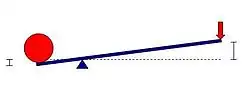 Het natuurkundige principe dat aan de hefboomwerking ten grondslag ligt is de arbeid: kracht maal verplaatsing.