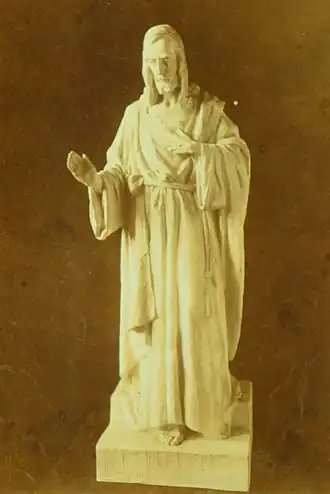 Het beeld toont een staande Christusfiguur, gekleed in een eenvoudige mantel met koord om het middel. Hij wijst met de linkerhand naar het vlammend Heilig Hart op zijn borst. In Falises eerste uitvoering maakte Christus een gebaar met zijn hele rechterhand, bij het nieuwe beeld maakt hij een zegenend gebaar met opgeheven wijs- en middelvinger.
