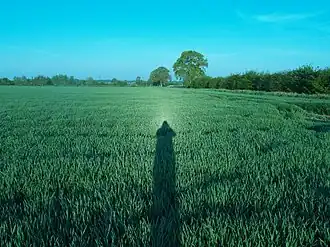 Het verschijnsel is met name zichtbaar bij een laagstaande zon op een bedauwd grasveld. Dauwdruppels retroflecteren het zonlicht van recht achter de waarnemer. Dit gebeurt alleen als dauwdruppels een nagenoeg bolle vorm hebben, en dat gebeurt als ze zich op harige of waterafstotende blaadjes bevinden. Simultaan met de heiligenschijn op bedauwd gras kan ook de dauwboog te zien zijn. De dauwboog is vrijwel hetzelfde optische verschijnsel als de primaire regenboog, maar dan onder de horizon, teweeggebracht in door de zon beschenen bolvormige dauwdruppeltjes in plaats van regendruppels.