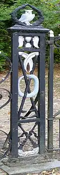 Het hek, met het jaartal 1882 dat verwijst naar het bouwjaar, is versierd met gietijzeren pieken. De monumentale waarde heeft te maken met de gaafheid van het hek, de markante ligging en het gebruik van de typerende doodssymbolen.