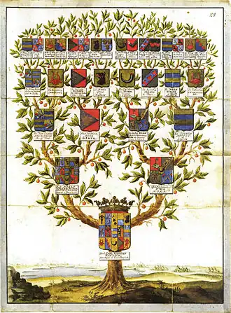 - ↑ a b c d Godfried Croenen (1995) 'Heraldiek' in: Hoe schrijf ik de geschiedenis van mijn gemeente? p. 195 (Universiteit Gent). Gearchiveerd op 25 november 2020. Geraadpleegd op 28 juli 2023.
