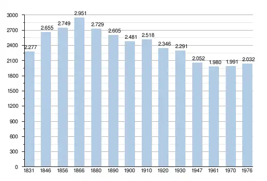 - Bronnen:NIS, Opm:1831 tot en met 1970=volkstellingen, 1976= inwoneraantal op 31 december
