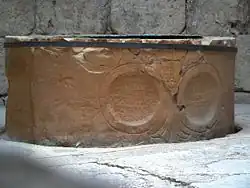 In augustus 531 werd, zoals blijkt uit de Griekse inscripties, een mozaïekvloer in het baptisterium aangelegd. Het centrale deel van deze vloer (later “jachtmozaïek” genoemd) bestaat uit afbeeldingen van mensen, dieren, bomen en bloemen op vier verschillende niveaus. In 597 (tijdens de verbouwing) werd dit mozaïek bedekt door een nieuwe vloer met aniconische geometrische motieven. Het oorspronkelijke mozaïek werd pas in 1976 opnieuw ontdekt.