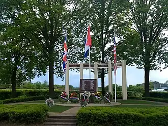 Het monument is een cirkelvormig stenen terras, omringd door een lage heg met drie openingen. Centraal op dit terras staat een stenen plaat met daarop de tekst “VOOR HEN DIE STIERVEN VOOR ONZE VRIJHEID”. Hieronder staan de namen van hen die gestorven zijn op alfabetische volgorde van achternamen en daaronder staat de bovenstaande leus in het Engels. Deze plaat is omringd door drie vlaggenmasten, waar rond dodenherdenking respectievelijk de Britse, Nederlandse en Amerikaanse vlag hangen. Op 4 mei worden hiervoor elk jaar kransen geplaatst door verschillende lokale stichtingen en wordt het monument versierd met bloemen. Achter dit tafereel staan vijf pilaren die vier panelen hooghouden met daarop een gedicht van Theo Hoogbergen dat luidt: