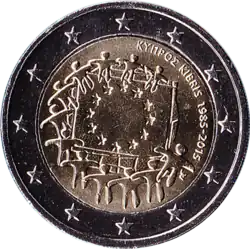 In de tweede helft van 2015 is er een vierde gemeenschappelijke herdenkingsmunt van € 2 uitgegeven met als thema 30 jaar Europese vlag. De munt is door alle EU-landen – die tevens in de eurozone zitten – uitgegeven, met ieder land zijn eigen versie. Dat betekent dat Andorra, Monaco, San Marino en Vaticaanstad er geen hebben uitgebracht. Op 6 augustus 2015 was Finland het eerste land dat de munt heeft uitgegeven en de rij der uitgevende landen werd op 23 december 2015 gesloten door Griekenland.