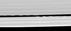De F-ring van Saturnus wordt door Prometheus en Pandora beheerd. Doordat deze laatste twee manen zeer dicht bij elkaar staan is de F-ring zeer nauw, en heeft deze een uniek gevlochten patroon dat door Prometheus en Pandora in stand wordt gehouden.