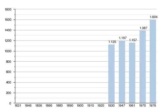 - Bronnen:NIS, Opm:1930 tot en met 1970=volkstellingen, 1976 inwoneraantal op 31 december