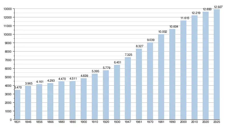 Alle historische gegevens hebben betrekking op de huidige gemeente, inclusief deelgemeenten, zoals ontstaan na de fusie van 1 januari 1977.