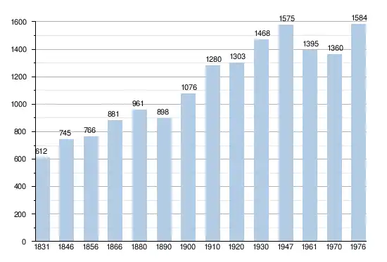 - Bronnen:NIS, Opm:1831 tot en met 1970=volkstellingen, 1976= inwoneraantal op 31 december