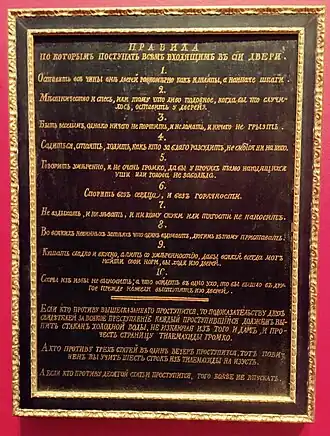 In de Hermitage hing een bord met gedragsregels. Onder de kop: