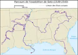 De expeditie raakte meer en meer verloren en keerde terug naar de Mississippi. Hier stierf de Soto aan een koortsaanval. Luis de Moscoso nam de leiding over. Hij trok eerst zuidwestwaarts, maar keerde vervolgens terug naar de Mississippi. Na nog een overwintering werden er schepen gebouwd, waarmee de conquistadores de rivier af en langs de kust naar Mexico voeren. Van de 700 man die aan de expeditie begon, zouden 311 het overleven.