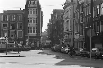 De kop van de Zeedijk gezien vanaf de Prins Hendrikkade hoek Sint Olofspoort (1981) -
