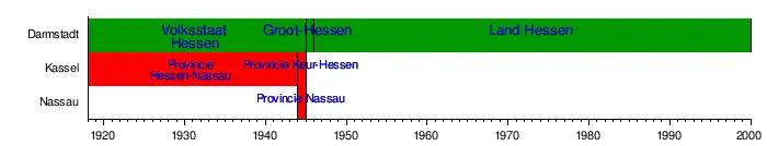 - Volksstaat Hessen (1918–1945), ontstaan toen een republikeinse revolutie het Groothertogdom Hessen omver wierp.