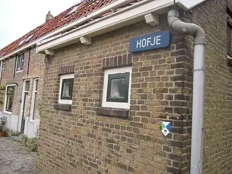 Het Hofje was oorspronkelijk geen boerderij, al lijken de indeling, de plaats van de kelder in de kop en het brede achterhuis daar wel op te wijzen. Maar omdat er geen erf en slechts een stalling bij was werd het pand waarschijnlijk oorspronkelijk als woning gebruikt. Omstreeks 1765 is het omgebouwd tot vier woningen die net als alle hofjes in gebruik waren als woonruimte voor armen. De uitbreiding met een vijfde woning is nog te herkennen in de gevel waarin zich een verticale naad in het metselwerk bevindt. De naam hofje is waarschijnlijk een verwijzing naar het kerkhof dat tot de twintigste eeuw aan het gebouw grensde.