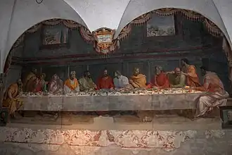 De compositie voor het rechtergedeelte ontleende Allori aan het gelijknamige werk van Andrea del Sarto, gemaakt voor de refter van de San Salvi in Forence, uit circa 1525. Anders dan Del Sarto heeft Allori de tafel voller beladen. Zo zijn er onder meer muziekinstrumenten te zien en Venetiaans glaswerk. De etenswaren zijn op hun beurt ontleend aan de werken die Jacopo Ligozzi schilderde voor de Medici's.
