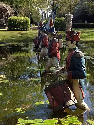 - De strijd bij Waterloo, een fontein met beelden van soldaten in uniformen van Napoleon die langzaam het water in verdwijnen. Het verhaal hierachter vertelt dat toen Napoleon met zijn leger door Het Land van Ooit wilde trekken de soldaten werden betoverd en veranderden in standbeelden.