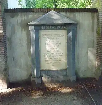 In de school werd in 1948 een plaquette onthuld om de leerlingen te herdenken die de oorlog niet overleefden. Later werd het verplaatst naar het schoolgebouw aan de Witte Kruislaan en nu bevindt het zich op de voormalige begraafplaats Gedenkt te Sterven achter de Grote Kerk. Op de plaquette staat: