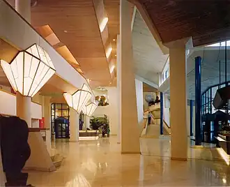 In het interieur wordt het eenvoudige materiaalgebruik en het vermijden van rechte hoeken voortgezet. Ook de beplanting wordt voortgezet in het interieur en is duidelijk aanwezig in de vides die elk van de torens heeft. Er zijn bovendien waterpartijen, die deels worden gevuld met opgevangen regenwater. Het belangrijkste element in het interieur is de binnenstraat, die alle delen van het gebouw verbindt. De binnenstraat heeft een afwisselend karakter door een slingerend verloop met vele vides en doorkijkjes. Delen van het interieur, zoals de lampen, de deuren en de balustrades, zijn speciaal ontworpen voor het gebouw.