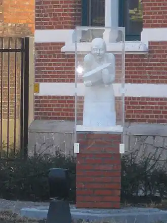 Het kunstwerk in het plantsoen van het gemeentehuis toont een meisje met een baksteenvorm in de hand. Het herinnert aan de onmenselijke kinderarbeid in de steenbakkerijen van de Rupelstreek.