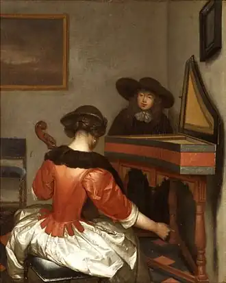 Ter Borch staat bekend als een schilder die veel aandacht had voor de narratieve aspecten van zijn schilderstukken. In psychologisch suggestieve taferelen roept hij op tot interpretatie en duiding van weergegeven gebeurtenis en de interactie die daarbij plaatsvindt. Bewust appelleert hij aan een bepaald nieuwsgierigheid naar de gedachten of gemoedstoestand van de afgebeelde personages. Daarbij geeft hij nauwelijks aanwijzingen, ook niet in de titels. Ieder mag er in diens gedachten een eigen verhaal bij construeren. Zo ook in het hier besproken werk Het concert.