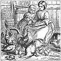 Het eendje gaat naar een boerenhuisje en hij komt bij een oud vrouwtje met haar kat en kip. De kat wordt Zeuntje genoemd en de kip Kuukelikortbeen. De vrouw kan niet goed zien en denkt eendeneieren te krijgen. Het eendje kan geen eieren leggen en de kat en kip vinden hem te min. Op een dag vertelt het eendje de kip over het water, maar de kip vindt dat het eendje dankbaar moet zijn voor wat hij heeft. Het eendje besluit de wijde wereld in te gaan en in de herfst dansen de bladeren in het rond. Sneeuwvlokken komen en een raaf krijst. Op een avond komen mooie witte vogels en het eendje heeft nog nooit zulke vogels gezien.