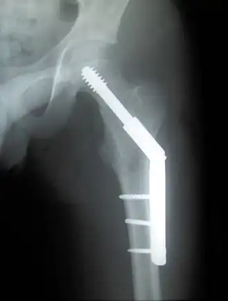 Er kunnen allerlei problemen ontstaan met het materiaal: schroeven en plaat kunnen breken, er uitgewerkt worden of aan de andere kant naar buiten komen en in het gewricht steken. Dit kan veroorzaakt worden door verkeerde plaatsing van het materiaal, maar ook door slechte kwaliteit van het bot. Een nieuwe operatie en eventueel vervanging van het heupgewricht door een total-hipprothese kan nodig zijn.