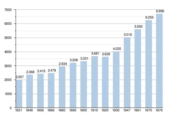 - Bronnen:NIS, Opm:1831 tot en met 1970=volkstellingen; 1976 = inwoneraantal op 31 december