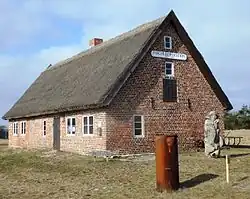 Het huis Die Blaue Scheune in Vitte, inmiddels met schoorsteen