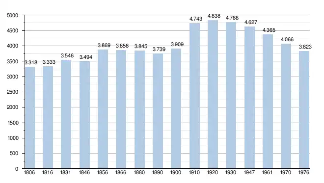 - Bronnen:NIS, Opm:1806 tot en met 1970=volkstellingen; 1976 = inwoneraantal op 31 december
