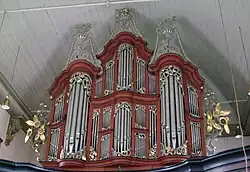 I/p | 9 | Nieuwbouw; bewaard gebleven; rugpositief is decoratief zoals ook in Engerhafe en Manslagt → Orgel |