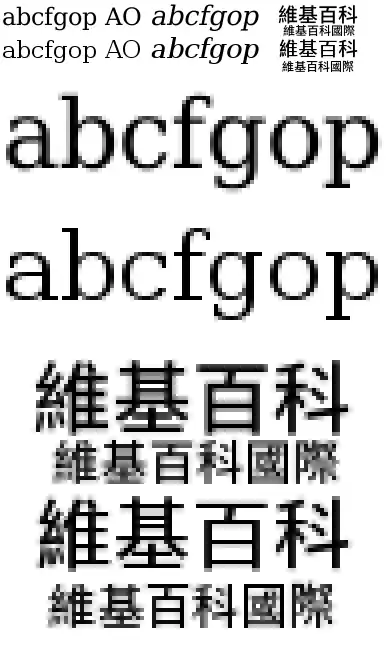 In het geval van een beeldscherm dat voldoende verschillende kleuren kan weergeven kan naast hinting ook anti-aliasing gebruikt worden om de leesbaarheid te verbeteren. Ook worden soms lettertypes geleverd in verschillende groottes, bijvoorbeeld 7-punts, 10-punts, en 12-punts. De 7-punts letters zijn dan meestal relatief dikker en wijder dan de 12-punts letters. Deze lettertypes kunnen wel geschaald worden, maar het beste resultaat wordt bereikt als ze ongeveer in de bedoelde grootte gebruikt worden.