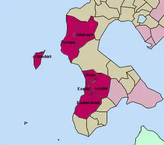| Hiyama | Esashi (hoofdstad) - Kaminokuni - Assabu |