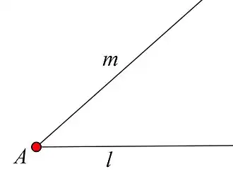 De tekst de hoek bij het hoekpunt A is een scherpe hoek kan met gebruik van het hoekteken worden geformuleerd als: .