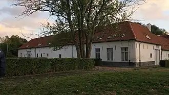 Een oudere stalvleugel onder zadeldak (pannen) voorzien van rechthoekige deuren en zoldervensters is te vinden in het zuiden. In de zuidoosthoek werd na de Tweede Wereldoorlog een bijkomende woning ingericht, met gecementeerde gevels aan de straatkant.