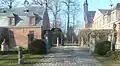 Het voormalig koetshuis, nu een woning, heeft een neogotisch interieur. Het kasteel heeft een oude kern, maar het aanzicht is neotraditionalistisch met trapgevels en dergelijke. Het symmetrisch bakstenen bouwwerk heeft een ingebouwd torentje boven de ingang. Ook hier is een neogotische aankleding van het interieur, en er is een huiskapel.