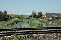Hogebrug met de Dubbele Wiericke, gezien vanaf de spoorlijn Den Haag - Utrecht