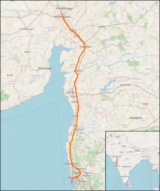 De bouw begon in april 2020. Een deel van 50 km van Surat tot Bilimora wordt naar verwachting geopend in augustus 2026. Het deel van 352 km door Gujarat zal dan in 2027 volledig worden geopend. Het resterende deel naar Mumbai zal naar verwachting eind 2028 worden geopend.