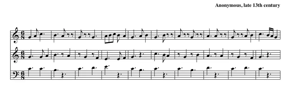 - Muziekvoorbeeld komt uit Cent Motets du XIIIe Siècle, vol. I, Paris, 1908, 64-65.